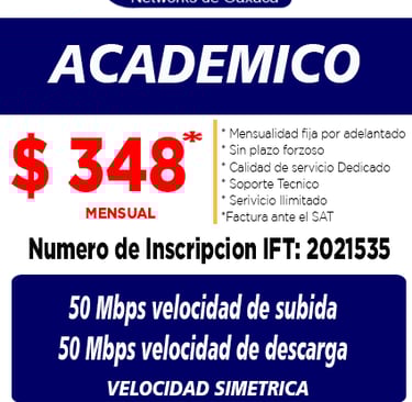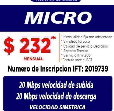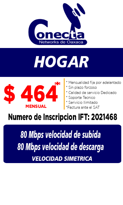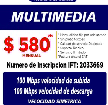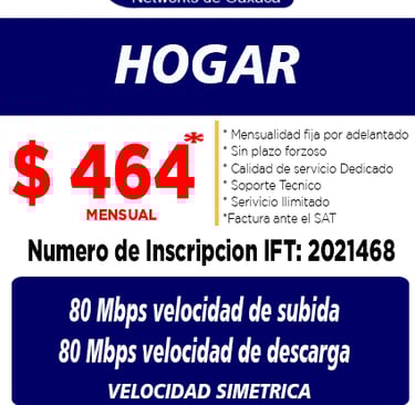 El servicio de internet se presta bajo tecnología de fibra óptica y es para uso residencial, es decir, debe utilizarse el servicio conforme al consumo de un solo hogar sin fines de lucro. La velocidad de carga y descargar ofertada es la misma debido a que el servicio de internet es simétrico.